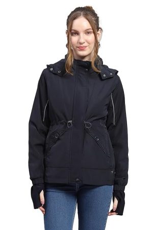 Monte Carlo Womens Solid Black Detachable Hood Full Sleeve Jacket