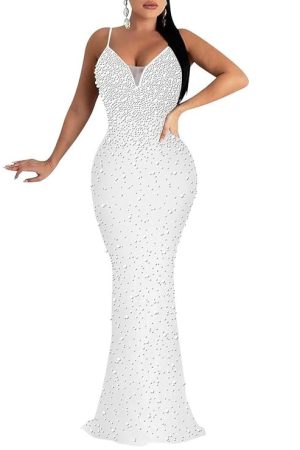 MAYFASEY Women's Sheer Mesh Dress Birthday Bodycon Rhinestone Dress See Through Glitter Elegant Mini Dress Party Night Dress, E-white, L