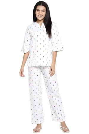 Shopbloom White Ice Cream Popsicle Print | V-Neck Cotton Women Night Suit | Lounge Wear | Night Wear
