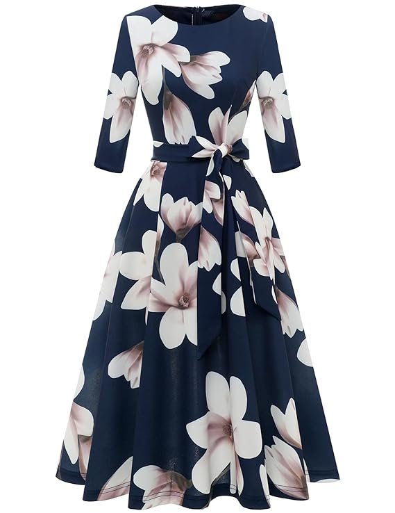 • Delicate Cocktail Dresses: This modest tea dress can be easily dress up or down! 3/4 sleeves will flatter your arms! Perfect A-line fits to hide any pooch! This is a stretchy party dress, so it will be comfy, limming at the waist without being tight.