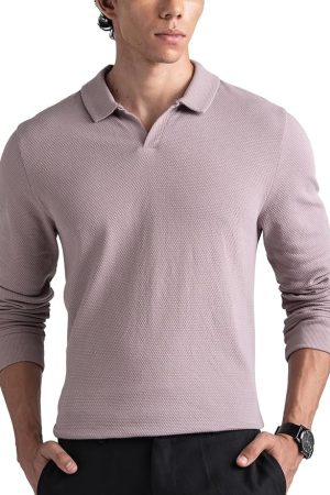 DAMENSCH Statement Waffle Johnny Collar Full Sleeve Polo with Premium Cotton Blend, Waffle Texture, Colours by High-IQ Dyes Heavy Weight Fabric T-Shirt for Men