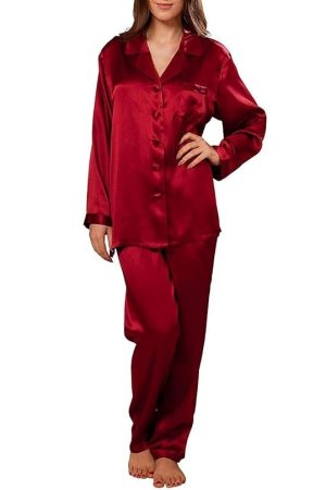 DEHMAN 100 Percent Silky Satin Silk Luxury Pajamas Pure Full Length, Women Sleepwear,Silk Pajams Silky Nightwear, Silky Satin slipwear