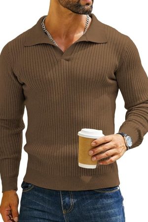 DENIMHOLIC Men's Cotton Full Sleeve Collar Polo Sweater for Men, Rib Knitted Sweaters for Men Winter