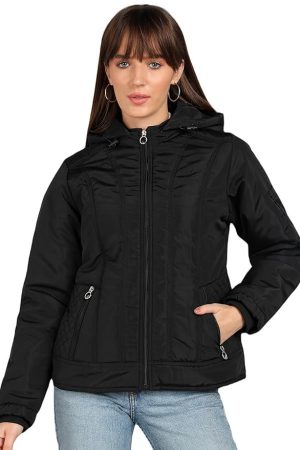 ELLIPSE Nylon Full Sleeves Regular Fit Fashionable & Stylish Winter Waterproof Jakcet With Hoodie For Women's