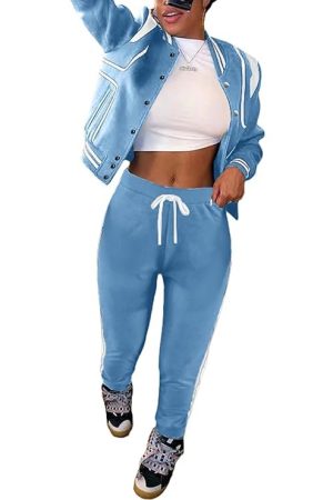 Fooullaide Women’s Varsity Jacket Sweatsuit 2 Piece Tracksuit Crop Top Button Down Letterman Jackets Pants Sets