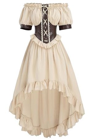 FCCAM Renaissance Dress Women Pirate Costume Ruffle Peasant High Low Dress