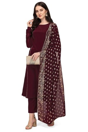 FIORRA Women's Maroon Poly Crepe A-Line Kurta Set With Dupatta