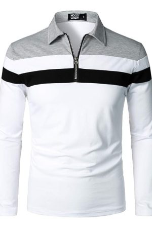 HOOD CREW Men’s Long Sleeve Polo Shirt Casual Slim Fit Shirts Contrast Color Patchwork T Shirts Cotton Tops