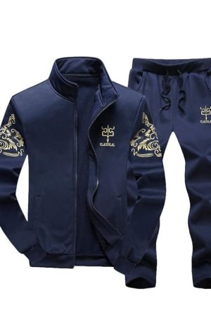 Lavnis Men's Casual Tracksuit Full Zip Running Jogging Athletic Sports Jacket and Pants Set Blue M