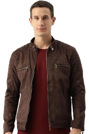 Leather Retail Coffee-Colored Suede Jacket For Men's