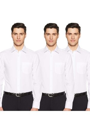 Marks & Spencer Mens Solid Polyester Blend Collared Neck Slim Fit Easy Iron Shirt