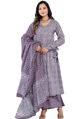 Amayra Women's Pure Cotton Printed Anarkali Kurta Set with Palazzo Pants & Dupatta- Ethnic Wear
