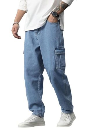 TAGAS Men Loose Fit Men's Flip Pocket Jeans || Mens Stylish Cotton Loose Fit Denim Cargo || Multi-Pocket Styling Pant||