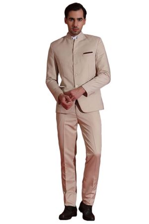 TAHVO Men's 2-Piece Suit Set | Self Designed Regular Fit Bandhgala Blazer with Trouser for Men | Jodhpuri Suit for Formal Events & Weddings