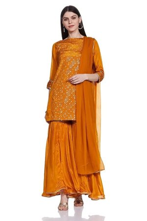BIBA Women Art Silk Double Layered Kurta Churidar Suit Set