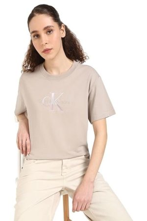 Calvin Klein Jeans Women's Solid Regular Fit T-Shirt (47B209G101_Beige