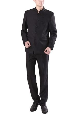 Chinese Tunic Suits Mandarin Collar Formal Black Suit Slim Fit Front Button Japanese School Uniform Groom Dress